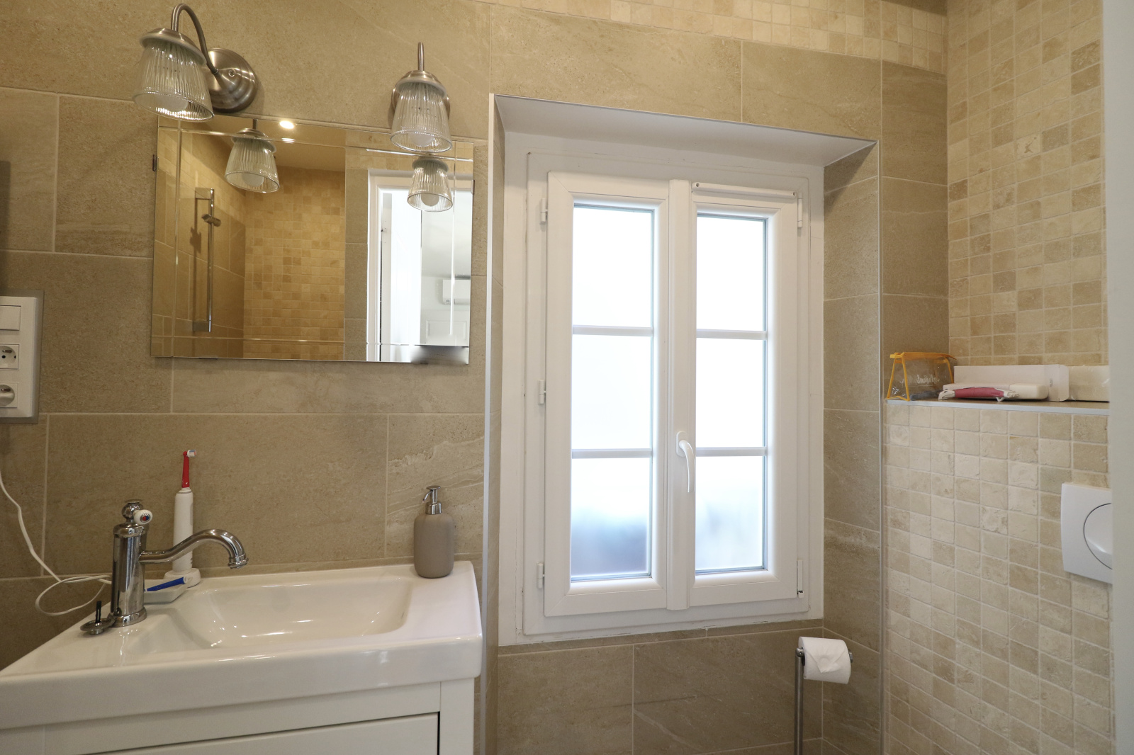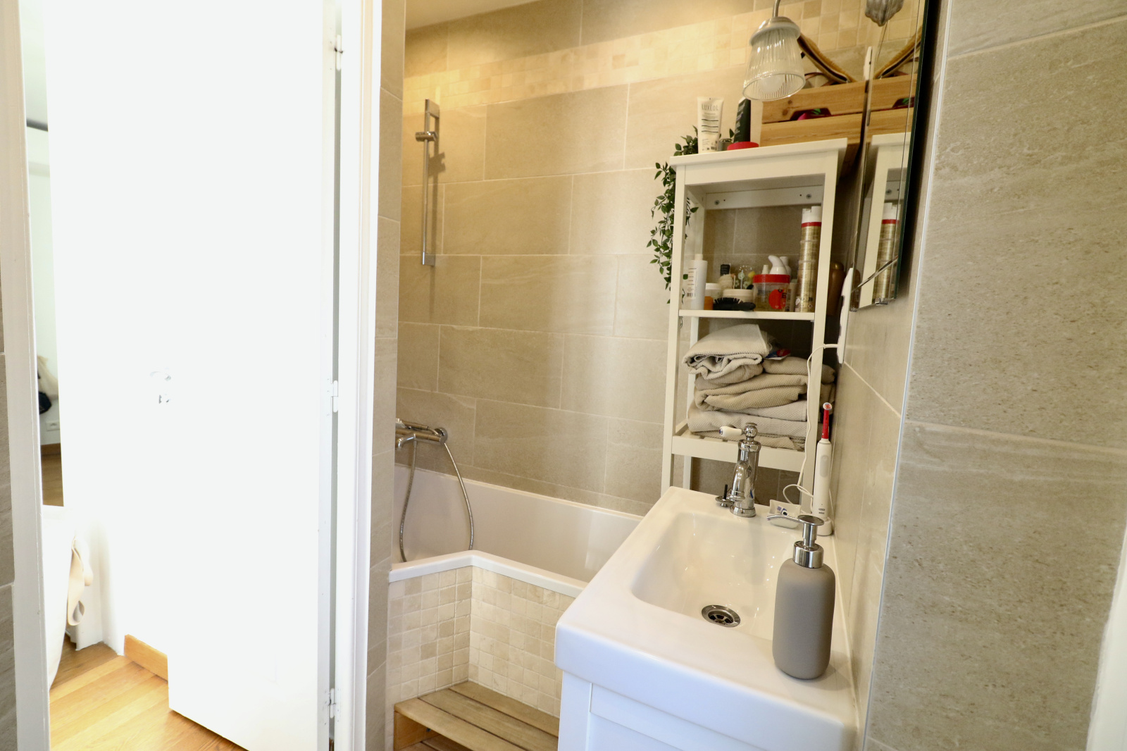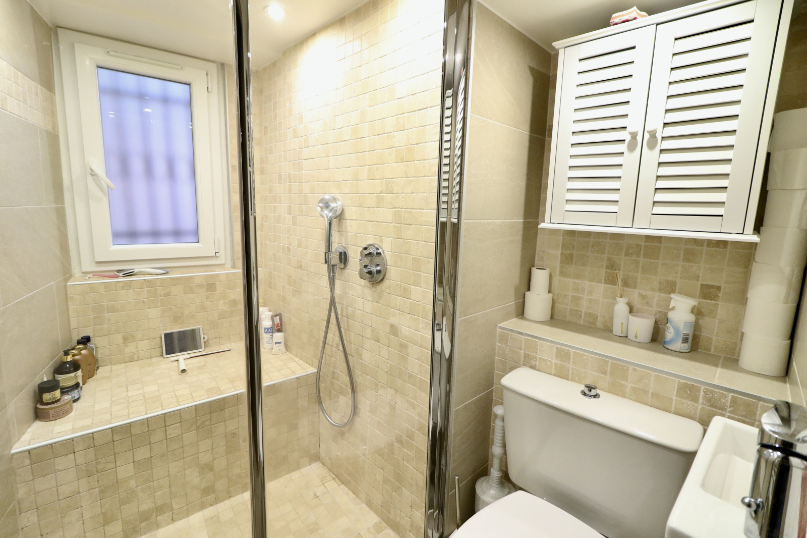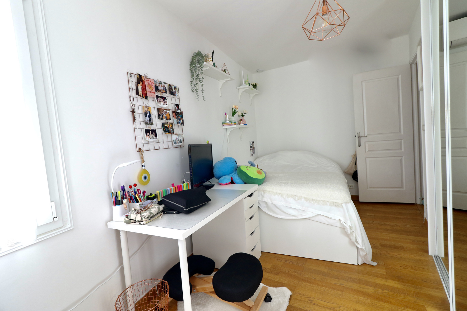 3ème niveau : 2 chambres de respectivement 9,37m2 et 12,23m2 avec vue sur les toits dont une avec salle de bains attenante avec WC de 3,34m2. Et un grand espace de stockage réalisé sur mesure.