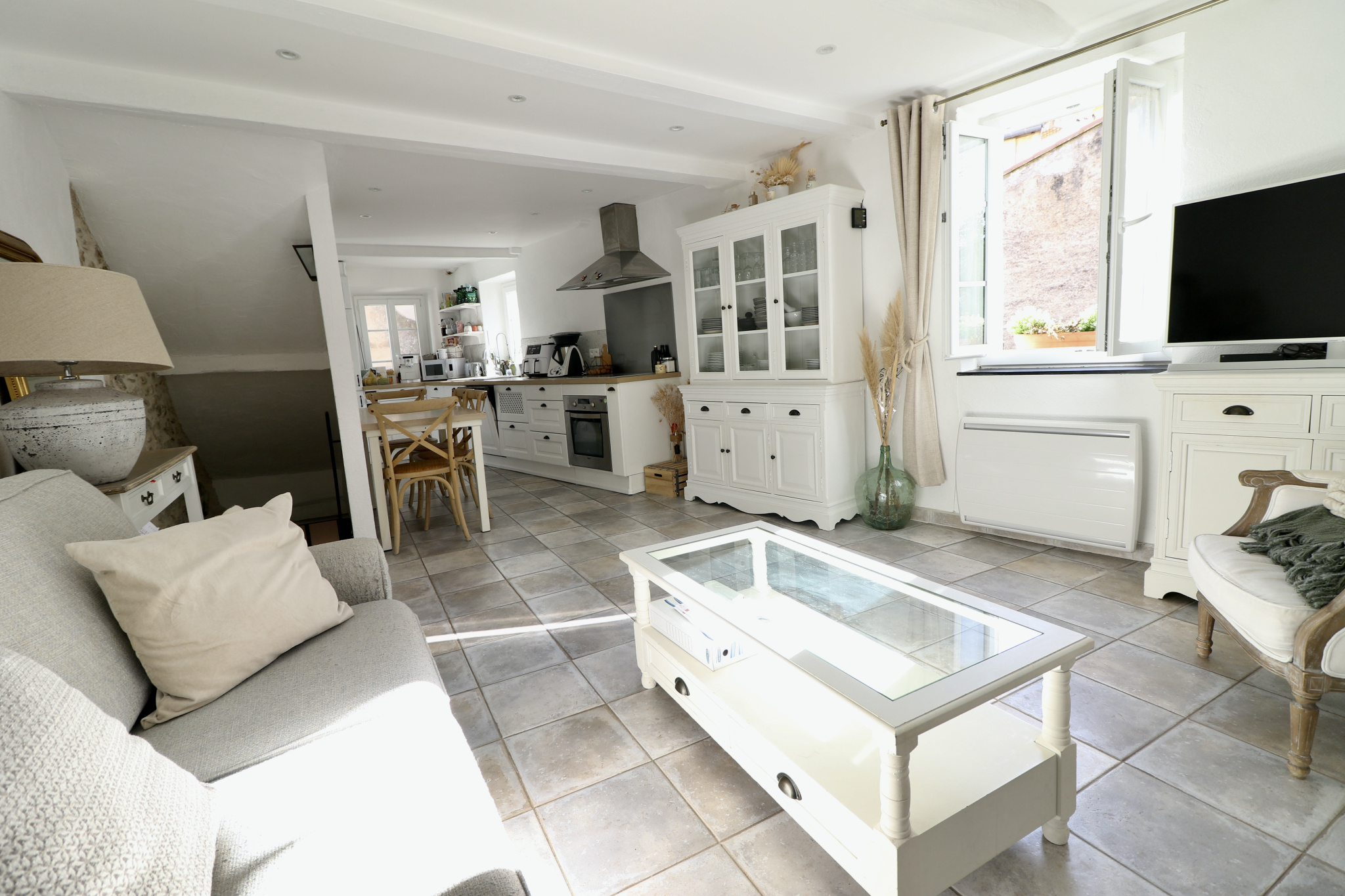 Charmante et lumineuse maison de village d'environ 74,54m2 sur 3 niveaux avec une cave saine et attenante de 21m2 située au calme absolu et en exposition plein Sud.