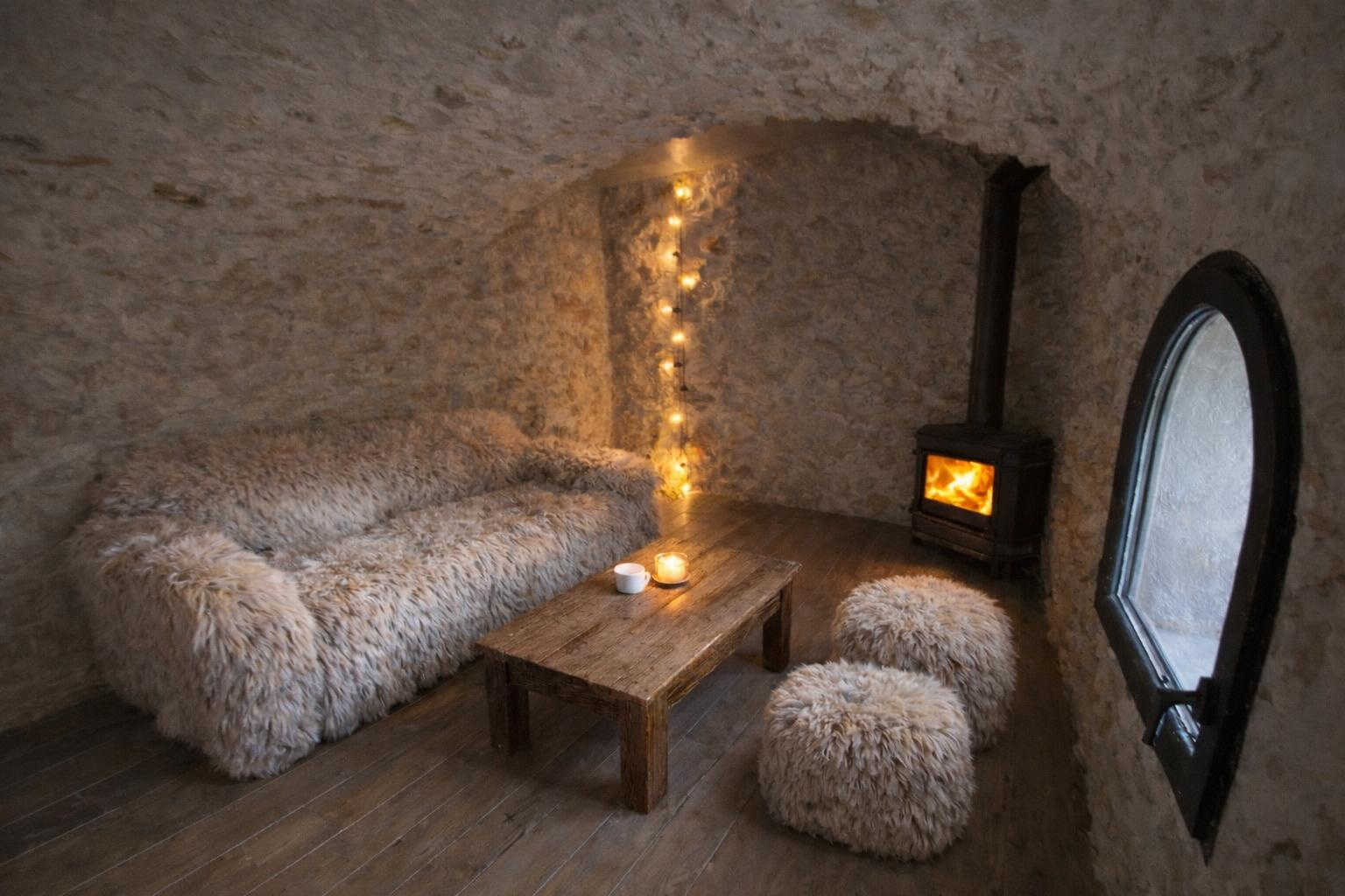 Rez de jardin : Séjour / Salle à manger de 16,86m2 plus un espace cosy vouté en pierres de 11m2 idéalement pour un coin TV, une cuisine séparée et équipée de 16,11m2, une salle d'eau et un WC.