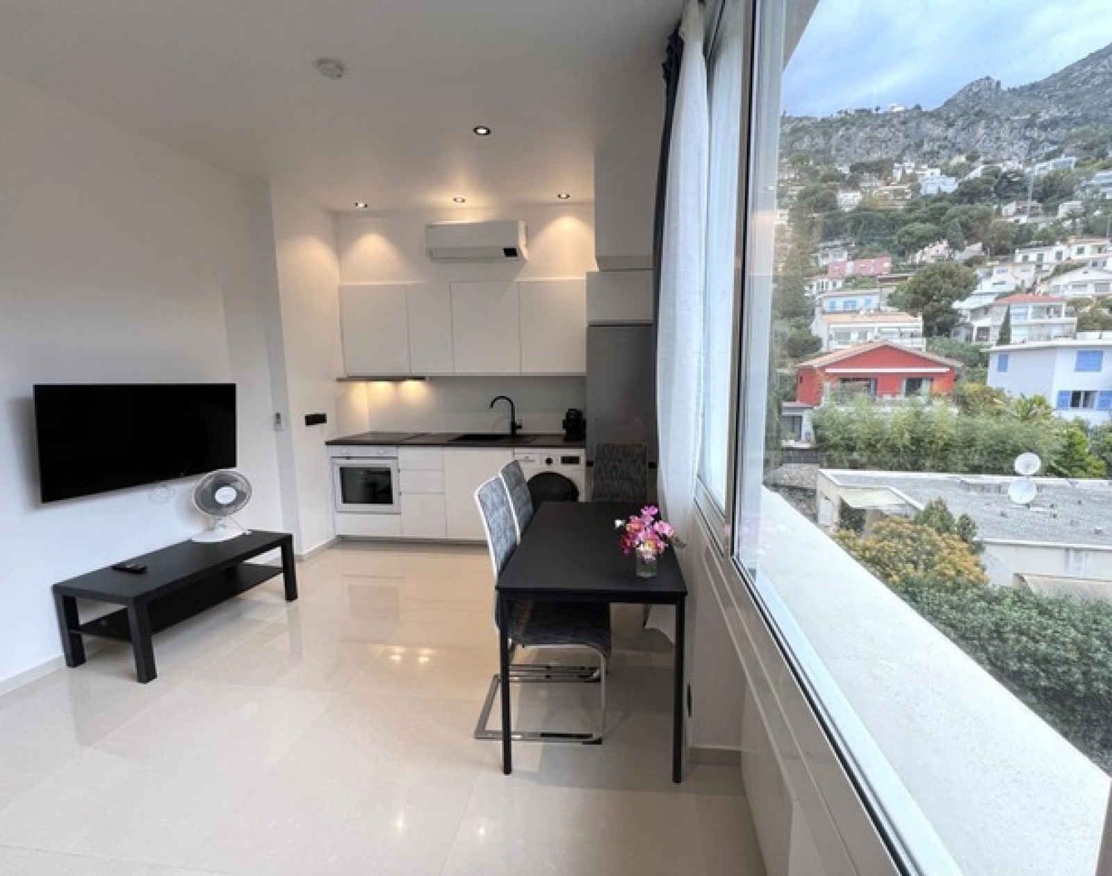 Rare à Eze Bord de Mer: Beau 4 pièces de 58m2 actuellement divisé en deux appartements indépendants. Les deux appartments deux pièces sont complétement rénovés et climatisés et se composent comme suit: Cuisine US design, sejour, chambre et salle de douche. A pieds des restaurants et des plages dans une résidence avec ascenseur. Propriété très lumineuse, exposée Sud-Est. Chauffage individuel, faibles charges. il ya aussi une cave. Proche plages, bus et train.