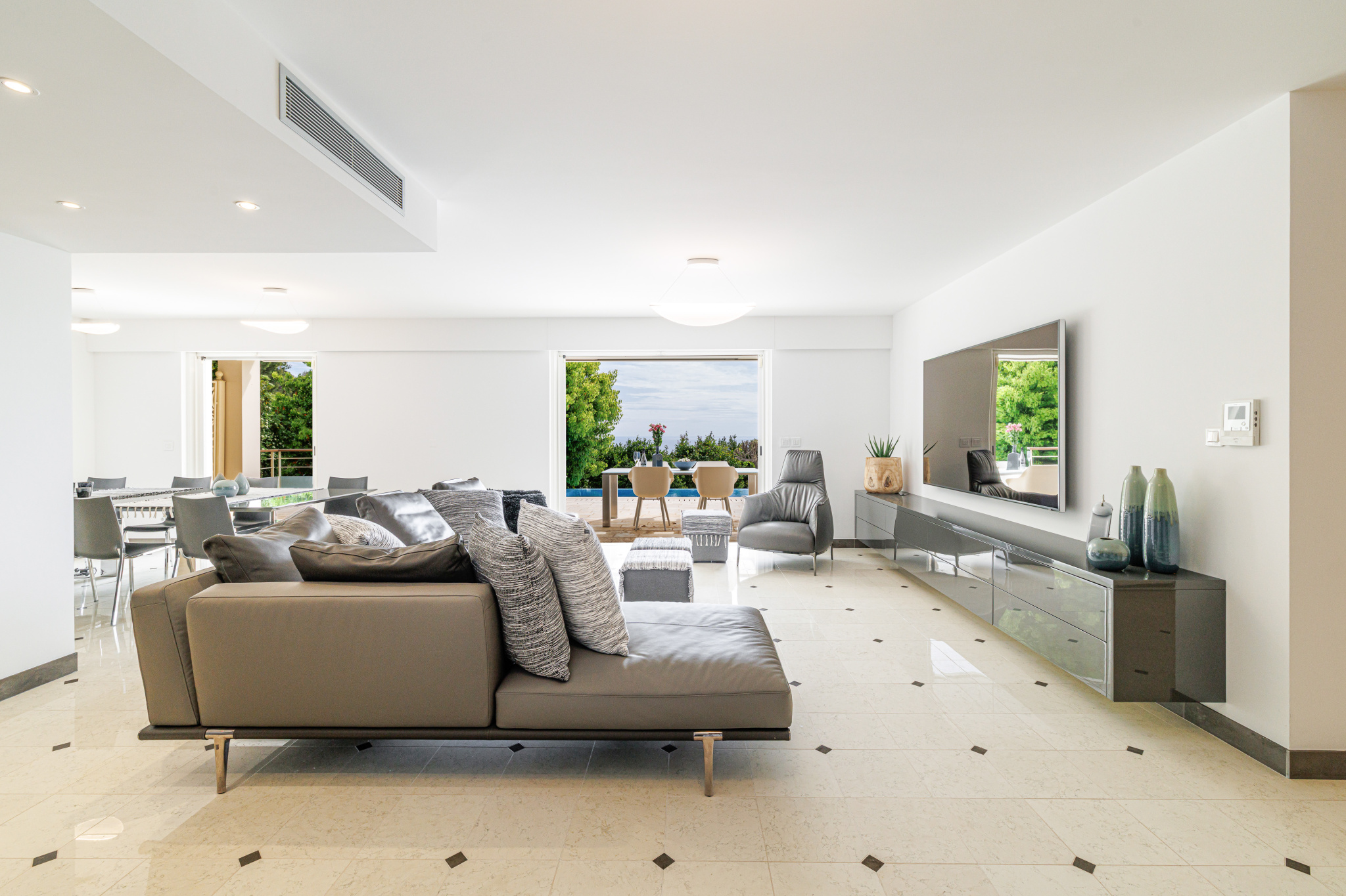 - Entrée raffinée ouvrant sur un vaste séjour lumineux et une salle à manger généreuse.