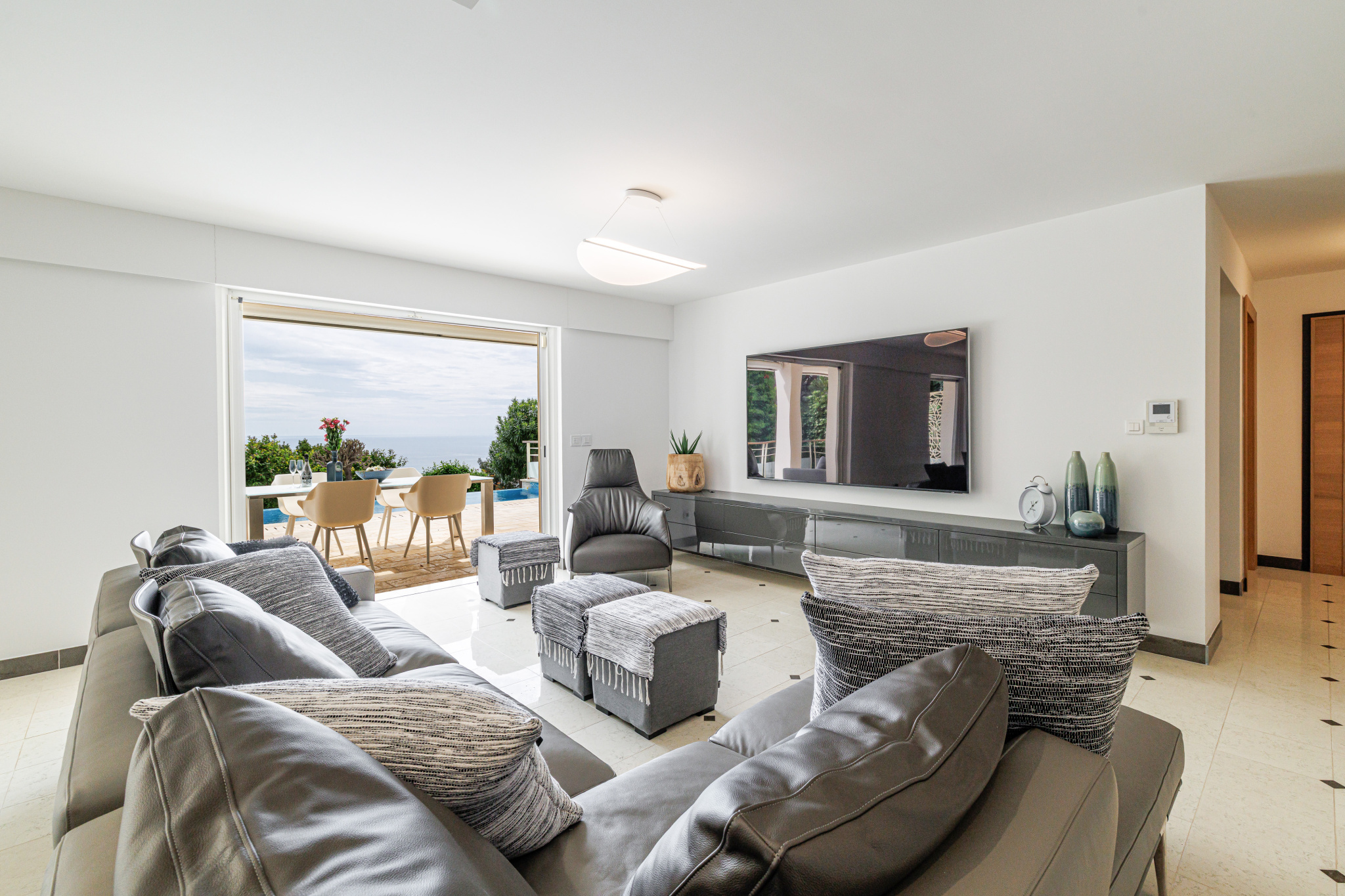 - Cuisine design entièrement équipée, le tout s’ouvrant sur une terrasse et une somptueuse piscine à débordement.