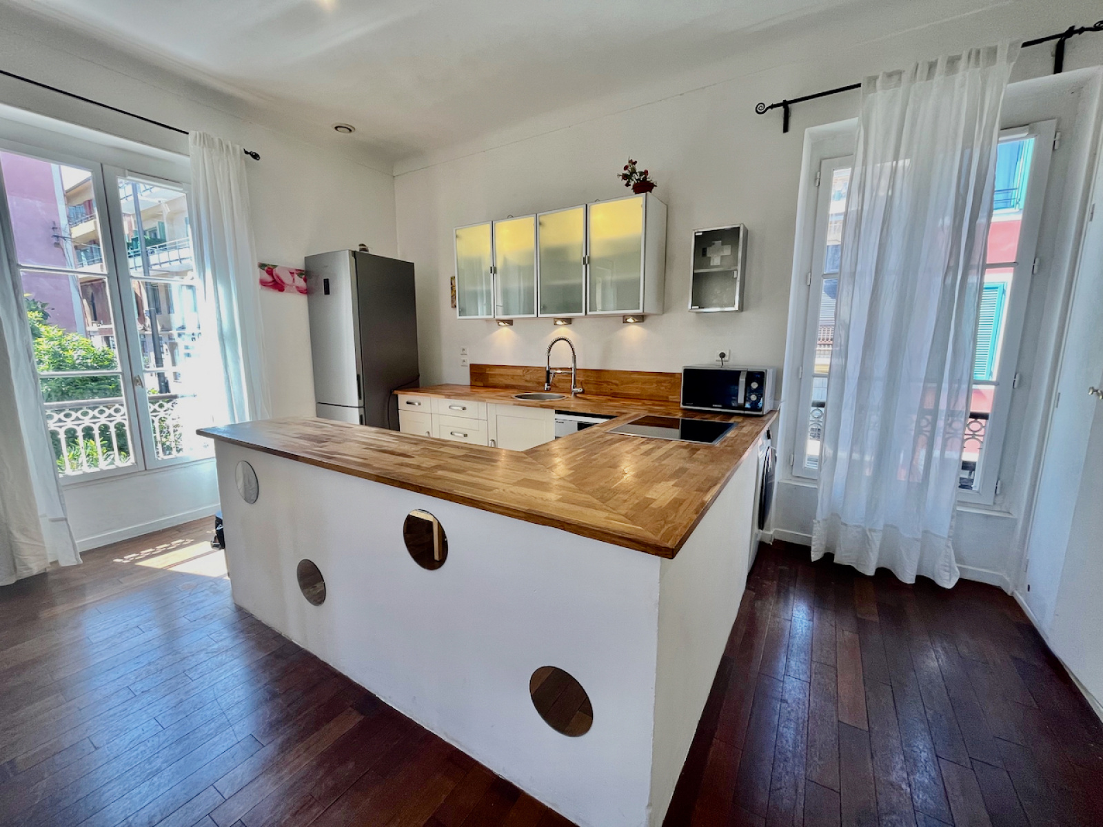 CO-EXCLUSIVITE - VILLFRANCHE-SUR-MER, A DEUX PAS DES PLAGES ET DES COMMERCES, EN PREMIER ET DERNIER ETAGE, SUPER APPARTEMENT 3 PIECES DE 56,96M2 CARREZ DANS UNE MAISON D'EPOQUE DIVISEE EN DEUX. L'APPARTEMENT SE COMPOSE COMMES SUIT: UNE ENTREE QUI DONNE SUR UN GRAND SEJOUR, SALLE A MANGER, CUISINE US EQUIPEE, DEUX CHAMBRES, UNE SALLE DE BAINS AVEC WC. TRES LUMINEUX ET CENTRAL.